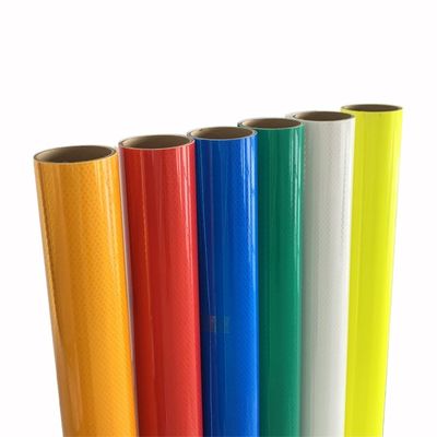 White Yellow Red Green Blue Fluorescent Color Diamond Grade Prismatic Reflective Vinyl Sheet Roll meets the stringent requirements of ASTM Standard Specification for Retroreflective Sheeting for Traffic ControlDie diamantenwertige prismatisch reflektierende Vinylfolie ist in einer Reihe von Farben erhältlich, darunter weiß, gelb, rot, grün, blau und fluoreszierendes Limettengrün gelb.Dies erlaubt eine Anwendung in verschiedenen Verkehrskontrollszenarien, die die Fahrer und Fußgänger bei der schnellen Erkennung der Beschilderung unterstützen.